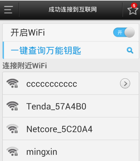 步骤一:打开你的wifi万能钥匙的应用,点击一键查询万能钥匙,