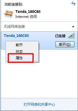 步骤二:当wifi万能钥匙成功破解热点密码时,任务栏右下角就会自动出现“无线网络连接成功”的图标,点击该图标,在打开的“无线网络连接”窗口中,右击要查看密码的无线连接项,从弹出的菜单中选择“属性”。