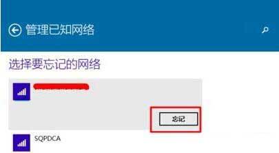 3、在管理已知网络界面,点击选择我们需要删除的无线网络连接,后面会出现“忘记”按钮,点击之后,该无线网络连接就不会再出现在您的管理已知网络界面了。如图所示: