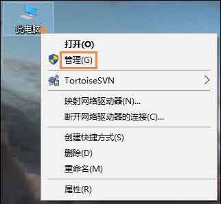 1、在桌面“此电脑”的图标上,点击鼠标右键,选择“管理”。如图所示: