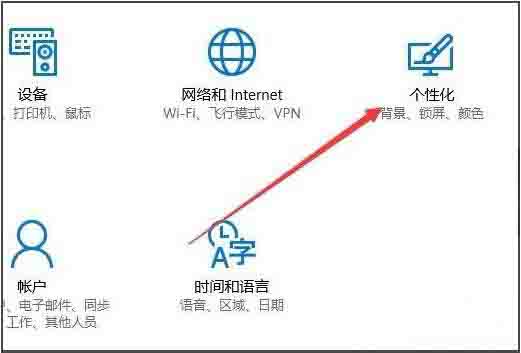 3、在打开的Windows设置窗口中,点击个性化图标,打开个性化设置窗口;如图所示: