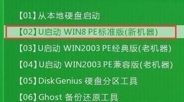 1、将制作好的u启动u盘启动盘插入电脑usb接口,按开机启动快捷键进入u启动主菜单界面,选择“【02】u启动win8pe标准版(新机器)”并回车,如图: