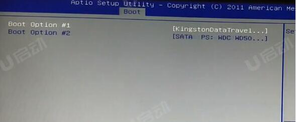 3.选择Boot,选择最底部的Hard Drive BBS,Boot Option #1选择U盘的名字。如图所示: