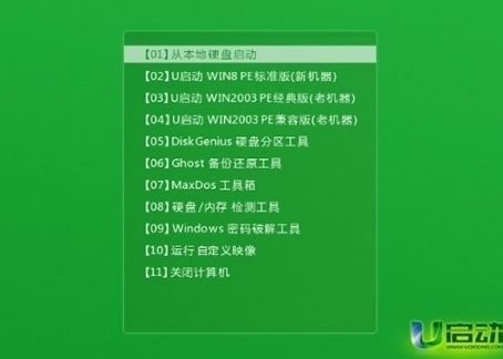 3、随后出现u启动主菜单,这样就完成u盘启动了,如下图所示: