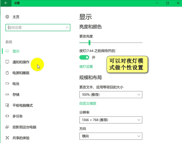 晚上盯着电脑屏时间久了会刺眼,这个功能就是为你量身打造,其实和手机端流行的护眼模式同属一类,直白点就是让你的屏幕显示变了个颜色。