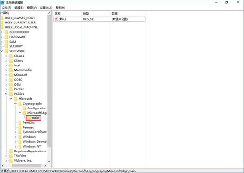 2、定位到HKEY_LOCAL_MACHINE\SOFTWARE\Policies\Microsoft\MicrosoftEdge,如图所示: