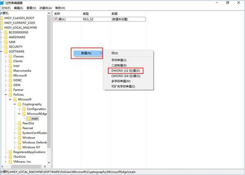 4、新建DWORD(32位)值,命名为PreventAccessToAboutFlagsInMicrosoftEdge,如图所示: