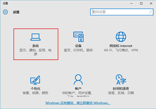 2、在“设置”界面点击“系统(显示、通知、应用、电源)”按钮,如图所示:
