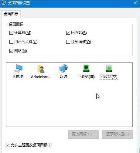 3、我们依次选中回收站(空)/(满),点击【更改图标】,如图所示: