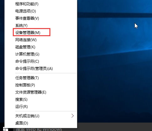 2、右键点击开始菜单,然后选择“设备管理器”,如图所示: