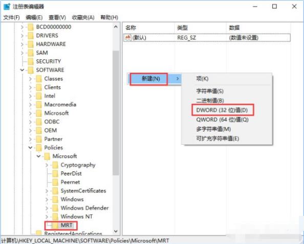 3、新建项,命名为MRT(如果已有该项,可跳过此步骤)。如图所示: