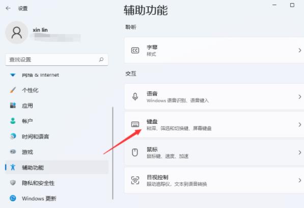 3、在辅助功能里面我们下拉找到键盘设置的选项,选择键盘选项进入设置屏幕键盘。如图所示: